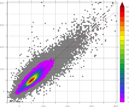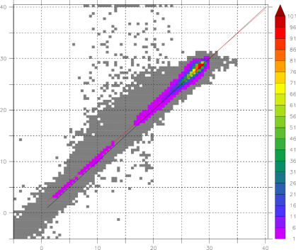 縦軸: 上からデータ数, 平均値(ブイ), バイアス, RMS誤差, 相関係数