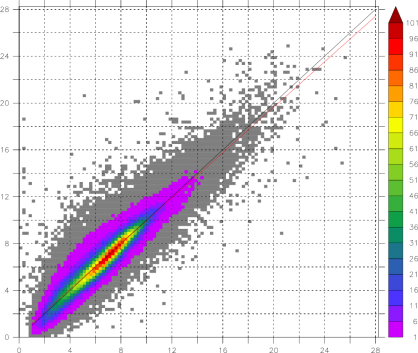 色: データ密度(%): 100%はデータ密度の最大値(値はキャプションに表示), グレーは1%未満