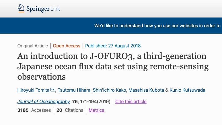 The dataset of J-OFURO3 has been minor updated to V1.2. This new version (V1.2) builds upon V1.1, released in 2021, with improvements in estimation methods, updates to source datasets, and an extension of the data coverage period. We hope V1.2 will be useful for your research.